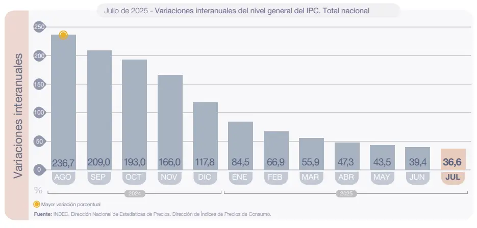 Aunque el registro de julio muestra una inflación contenida en términos mensuales, el acumulado anual y el interanual evidencian que la presión sobre los precios sigue siendo alta. La diferencia entre bienes y servicios, el peso de los aumentos estacionales y la expectativa de traslado del salto cambiario plantean interrogantes para los próximos meses.